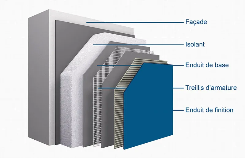 Sur les façades, nous appliquons des isolants de différentes natures (polystyrène, laine minérale, polyuréthane…) recouverts d’un enduit armé et d’un crépi de finition. Cette technique combine isolation, esthétique et durabilité.